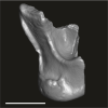 M3#366- CBI-1-565, a damaged right mandible, which consists of three isolated pieces found together and reassembled here: the anterior part of the dentary bears the p3 and m1, and alveoli for p4, p2 and c, while the posterior part preserves m3 and a portion of the ascending ramus; the m2 was found isolated but in the same small calcareous block treated by acid processing. - CBI-1-577, isolated right lower p4. - CBI-1-587, isolated left lower p2 (reversed). - CBI-1-580, isolated left lower canine (reversed). Type: "3D_surfaces"doi: 10.18563/m3.sf.366 state:published |